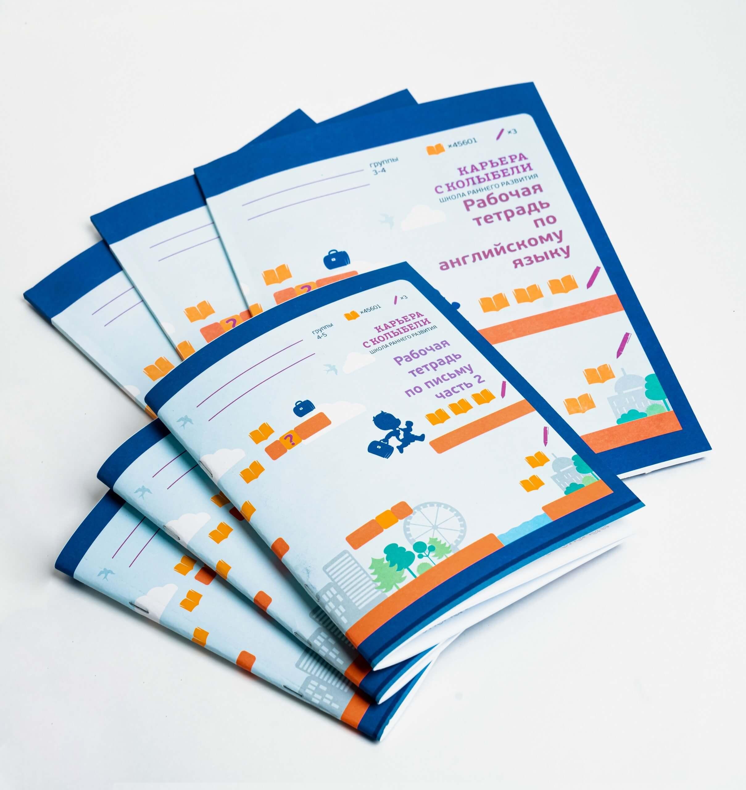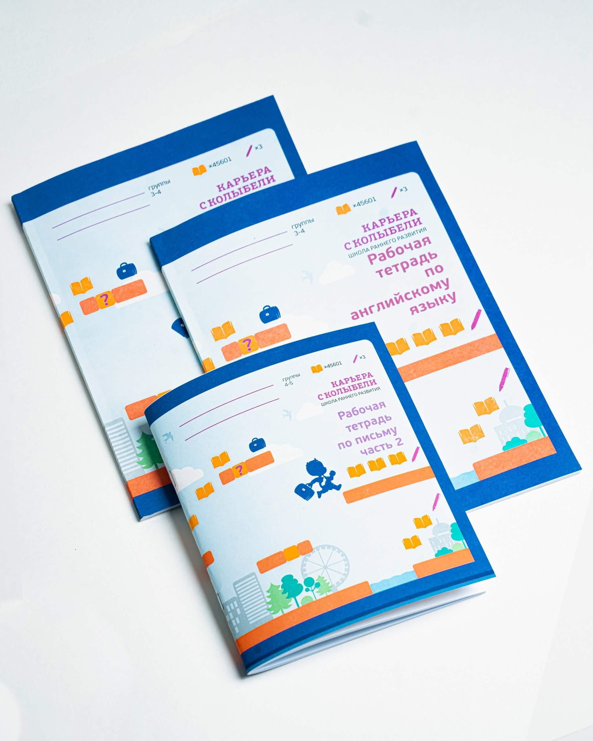 Разработка, верстка и печать рабочих тетрадей для школы "Карьера с колыбели" для дошколят. Более 30-ти рабочих тетрадей по предметам: английский язык, логика, математика, развитие речи, чтение, ОЗМ, письмо.